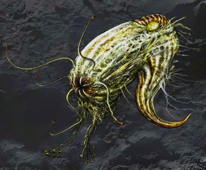 Tentáculos que fluyen y pulposa, saco alargado gris-negro de un cuerpo ... no hay señas de identidad de todos los demás que los tentáculos, a tientas. ¿O había, sí, un nudo en la parte superior del cuerpo de la cosa ... un recipiente de las clases para el cerebro, los ganglios basales, o cualquier órgano enfermo gobernado vida repugnante de este horror!